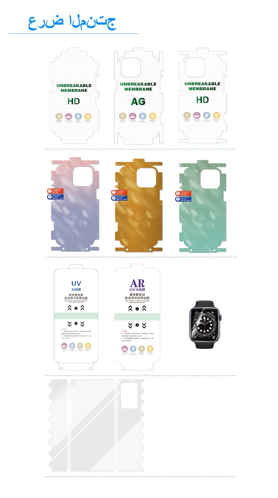 يرجى قراءة تعليمات التركيب بعناية قبل وضع الفيلم.